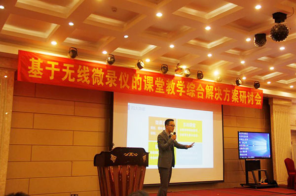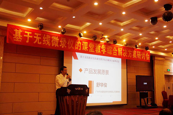 關于“基于無線微錄儀的課堂教學應用綜合解決方案”由廣州吉星總經理舒華俊向大會做了產品發展愿景的報告