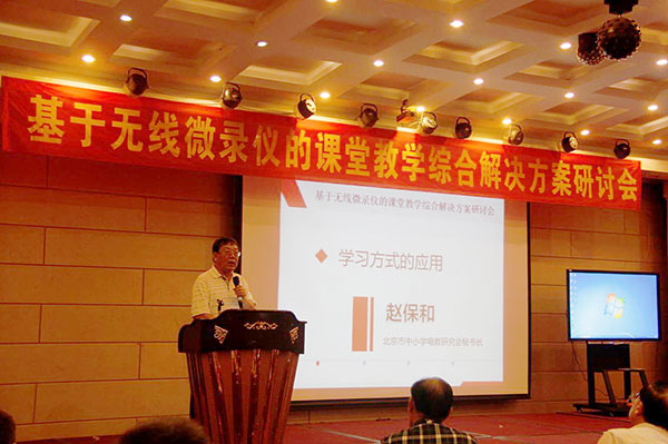 基于吉星幾百臺套無線微錄儀在北京各中小學的應用實踐,北京市中小學研究會秘書長趙保和向大會分享了吉星無線微錄儀的應用成果。