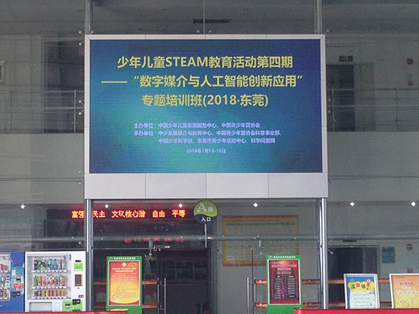 2018年1月16-18日,在風(fēng)和日麗的南方小城——東莞,為推動(dòng)信息技術(shù)促進(jìn)傳統(tǒng)教學(xué)效率的提升,拓展少年宮、科技館等校外活動(dòng)場(chǎng)所的管理者和教師的工作視野,一場(chǎng)由中國少年兒童發(fā)展服務(wù)中心、中國青少年宮協(xié)會(huì)主辦,中少發(fā)展媒介與教育中心、中國青少年宮協(xié)會(huì)科普事業(yè)部、中國少年科學(xué)院、科學(xué)同盟網(wǎng)、東莞青少年活動(dòng)中心等單位承辦的“少年兒童STEAM教育活動(dòng)‘數(shù)字媒介與人工智能創(chuàng)新應(yīng)用’專題培訓(xùn)”活動(dòng)圓滿舉辦。