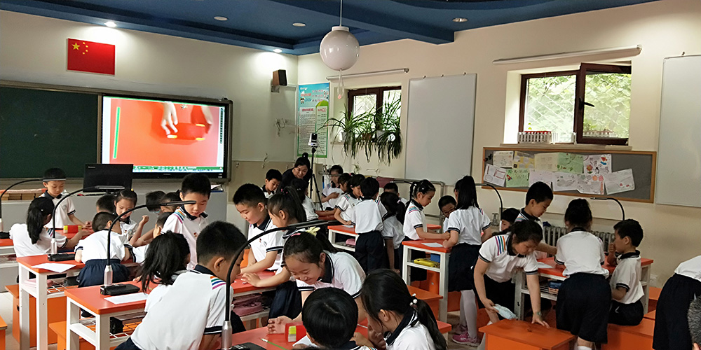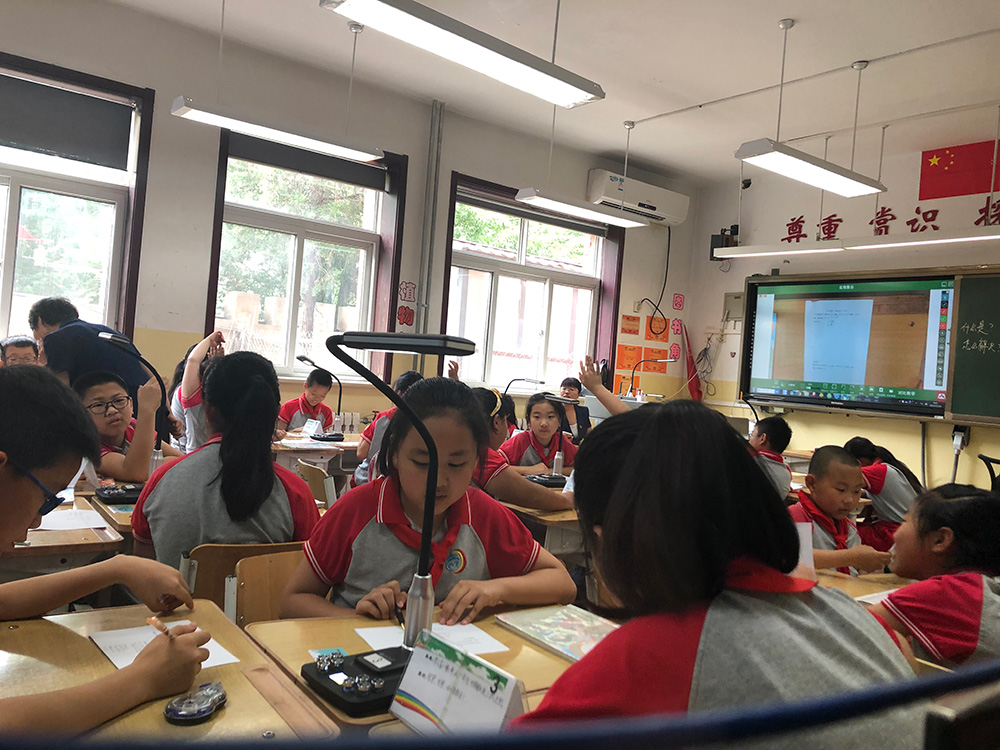 在智能互動終端及智慧課堂系統(tǒng)的幫助下,每個小組在大屏展示了自己的作品并如何將石頭快速的移開的過程共享給全班,小組之間進行互動學(xué)習(xí),大大提高了課堂的互動氛圍。同學(xué)們深刻體會到科技的發(fā)展給人類的生活帶來了非同凡響的影響!