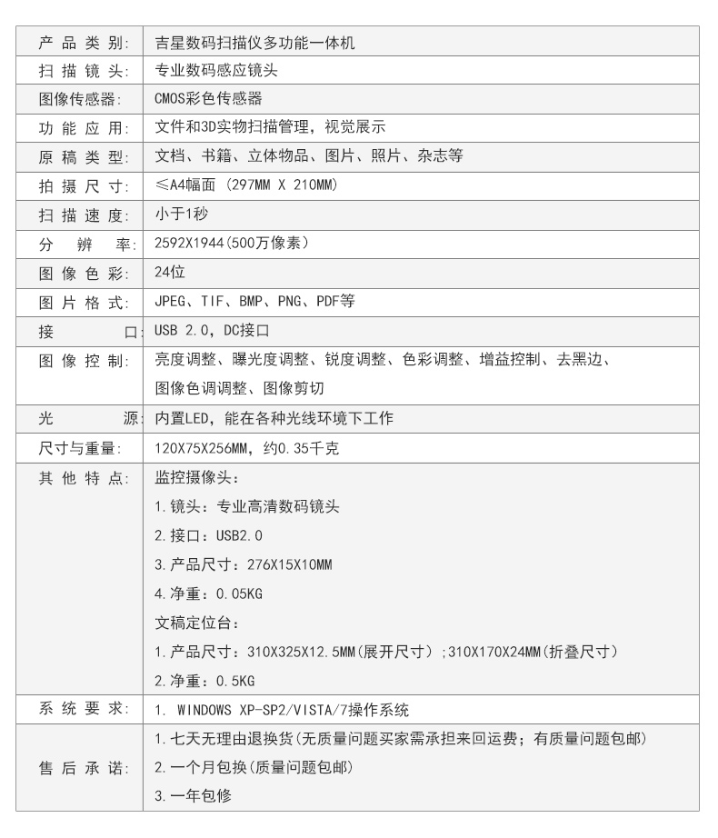 吉星便攜辦公助手500萬像素高清掃描 A4幅面